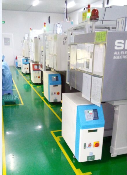 模温机要达至所要求的模具温度,其次为辐射加热器,或插入式电热管,但效果并不理想,模温未能达到均匀。然而辐射加热器的使用较为灵活,对模具的伤害较少,但效率较低;插入式电热管只适用于长期加热的位置,应用范围较为局限。另外,利用低速压射法-即降低初级压射速度,直接以金属熔液加热模具亦是极为常见的方法,不过此方法对模具的寿命有不良影响,不适用于昂贵的精密模具。由于射出时处于瞬间阶段,熔液之温度将侵入模腔表面,其侵入之深度约为铸件厚度模温机之二倍。在高热剧烈侵入的期间,模腔表面的高温状态,将使模腔表面发生高应力,相对微裂现象产生的机会会倍增。