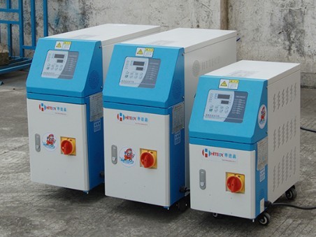 模温机最理想的加热方法应为热油加热。热油不间断地通过模具内管道,从内部进行模具加热,使模具达到适合生产的状态。由于导热油不但能加热,亦可像水般进行冷却,功能像热交换器般,可保持模具温度在一定范围内,即使生产中断时亦可适当地保持模具温度。